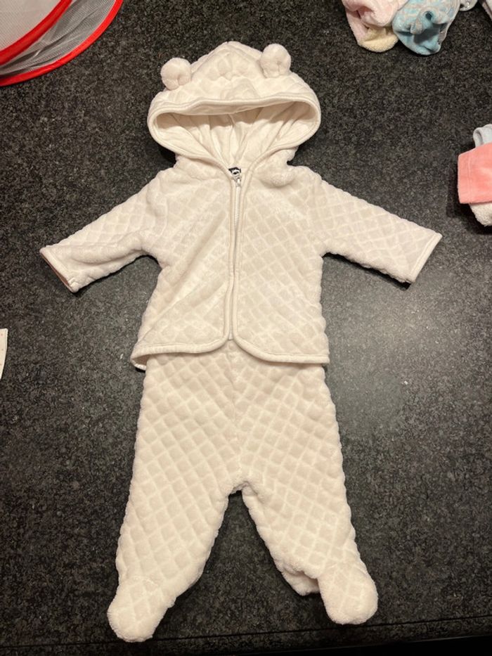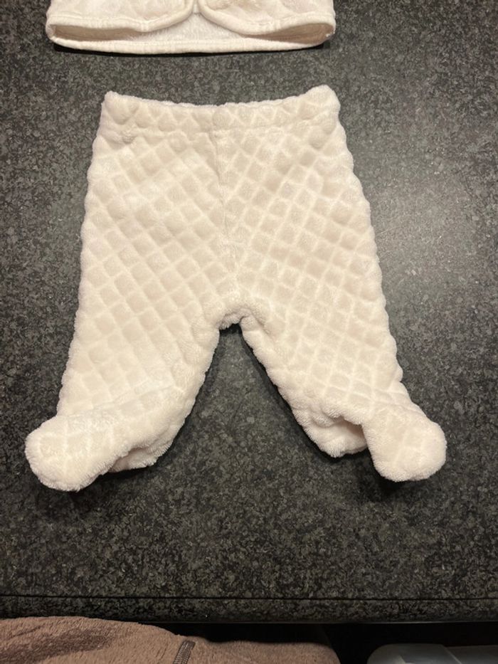 Ensemble kiabi taille naissance. Très peu porté. Toujours aussi doux qu’à l’achat, à l’intérieur comme à l’extérieur!