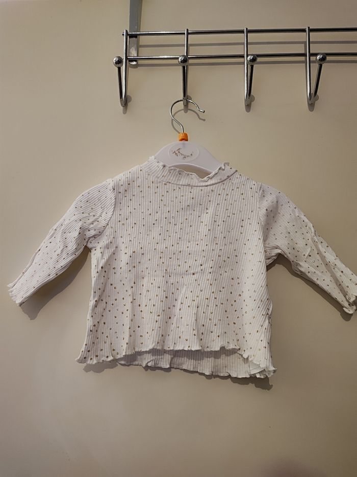 Haut bébé fille 3 mois Coloris blanc imprimé motifs doré