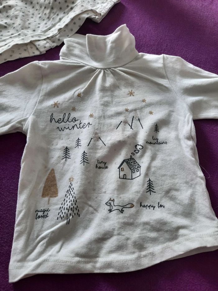 2 T-shirts 9 mois Le t-shirt "hello winter" est un peu tâché sur le col Bon état #9mois_manou2903