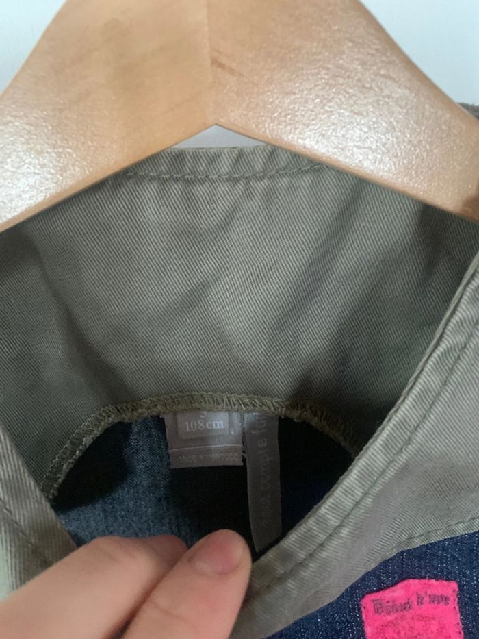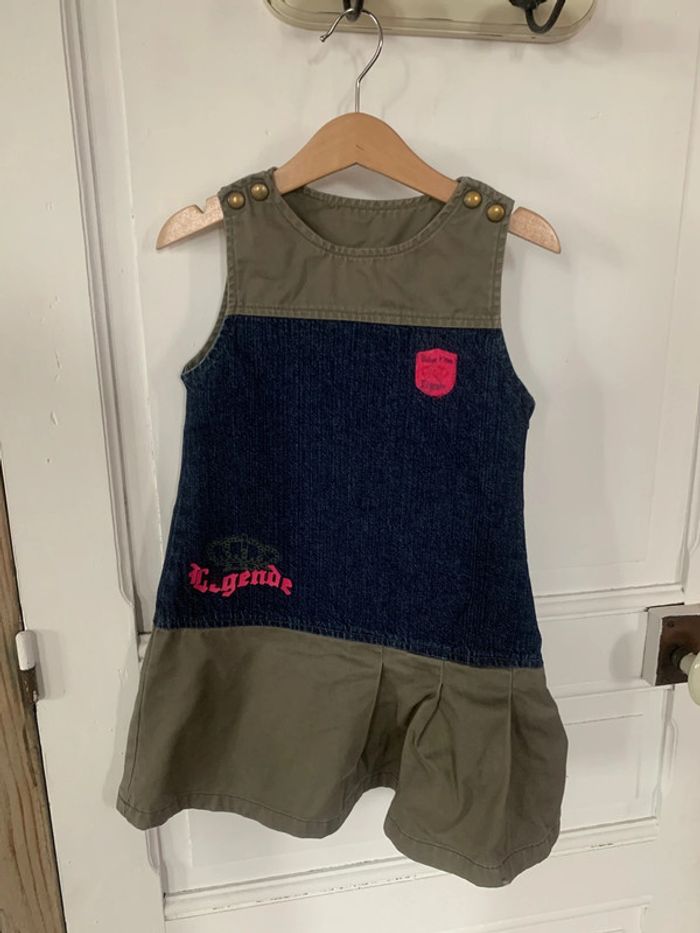 Robe en jean, tout compte fait taille cinq ans très bon état à part l’inscription en rose un bout est parti