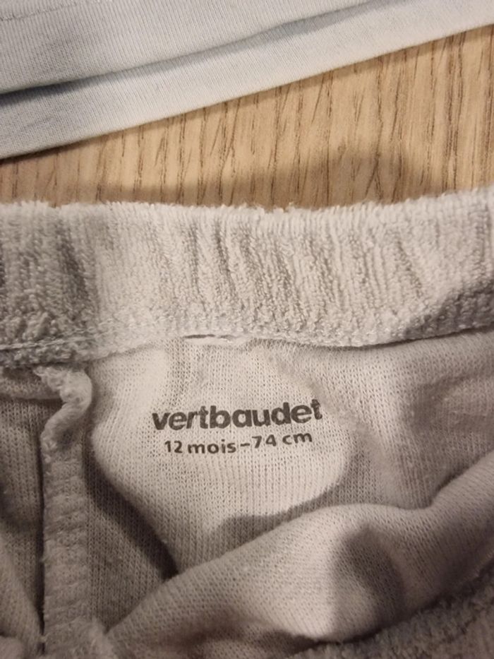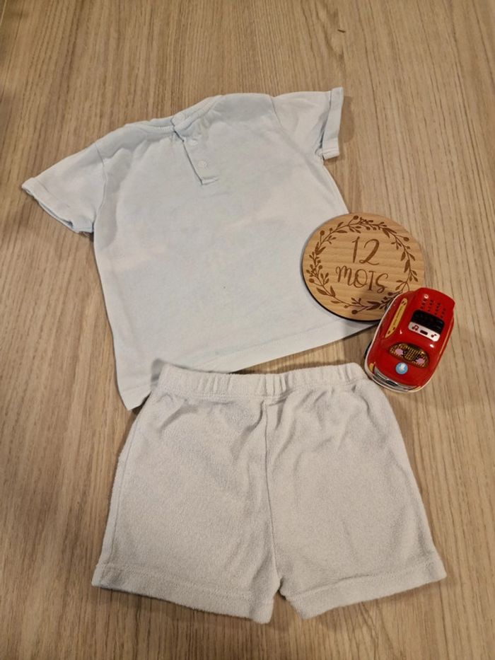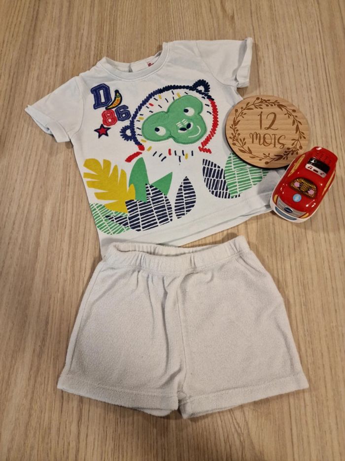 Ensemble comprenant - 1 t shirts MC Du Pareil Au Même : attention cf photo taches blanches ne se voyant qu au soleil - 1 short Vertbaudet matière eponge