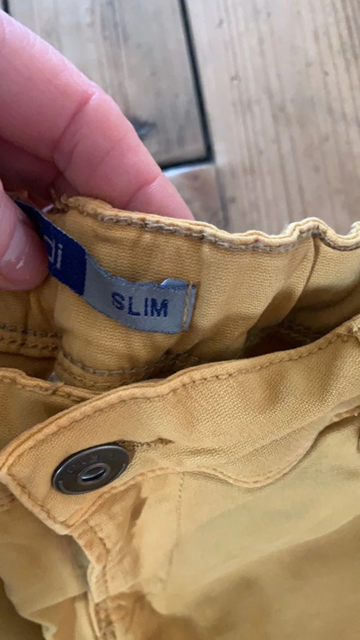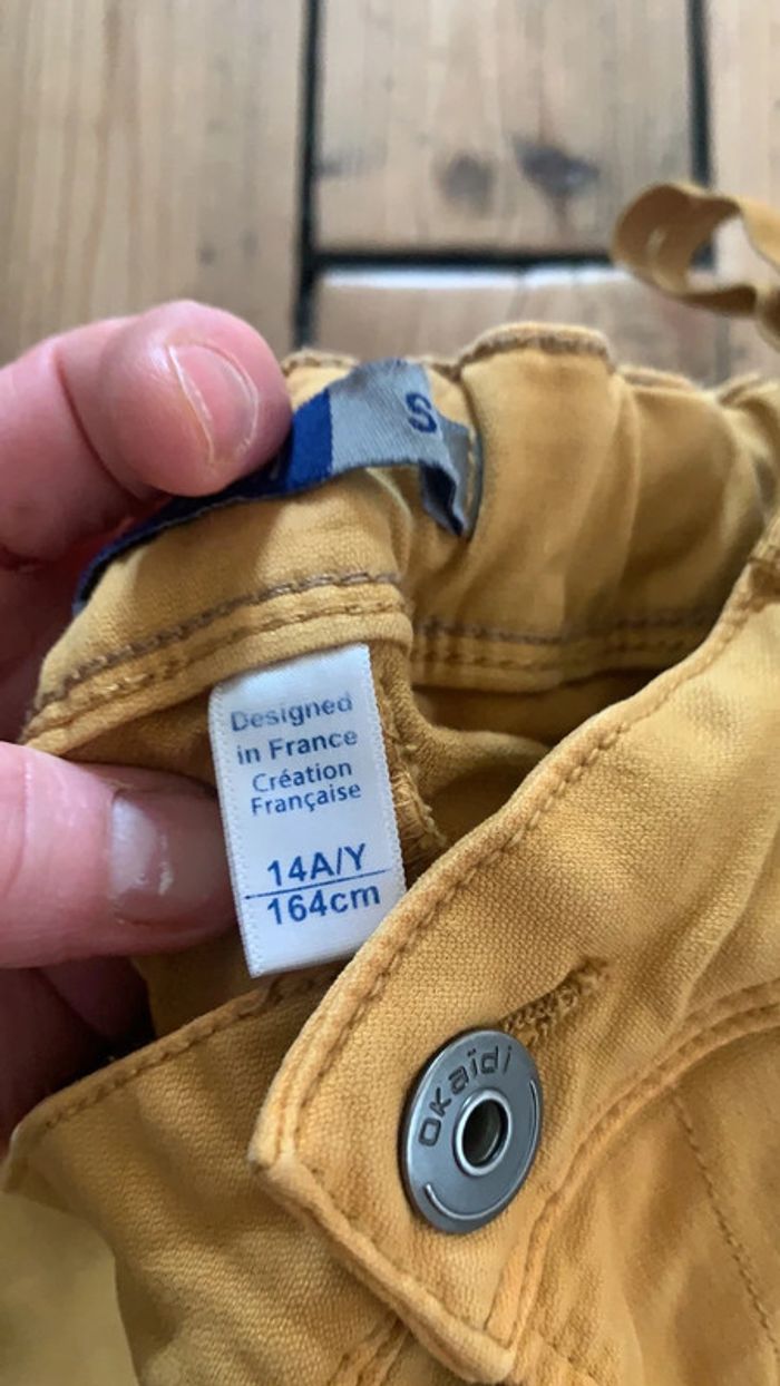 Pantalon en toile de couleur, moutarde, marque Okaïdi, très peu porté, taille ajustable