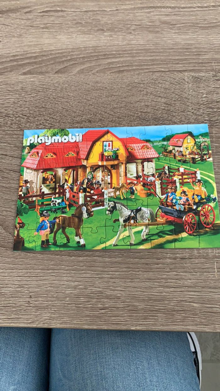 Puzzle 54 pièces Playmobil en très bon état représentant une écurie avec ses chevaux
