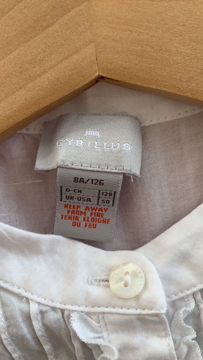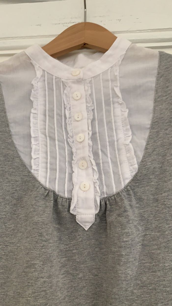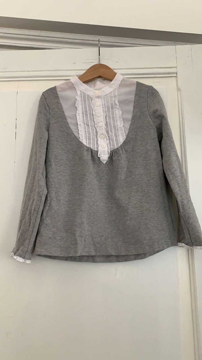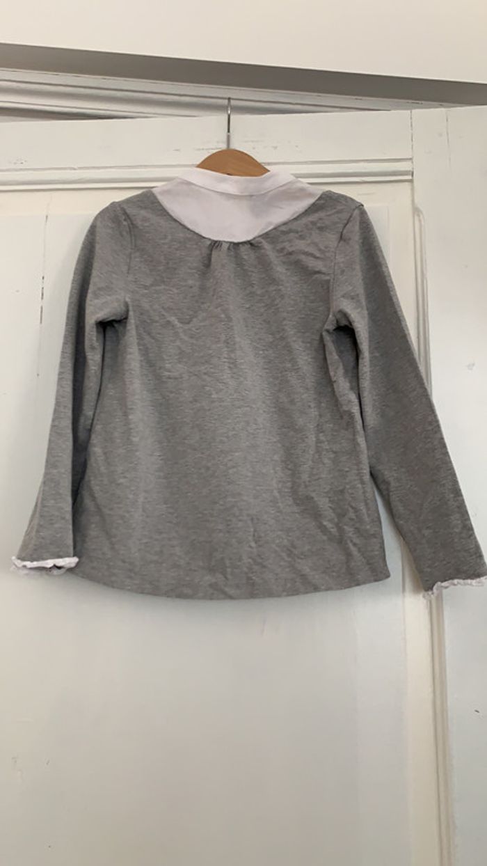 T-shirt manches longues Cyrillus avec un faux col chemise en très bon état taille huit ans