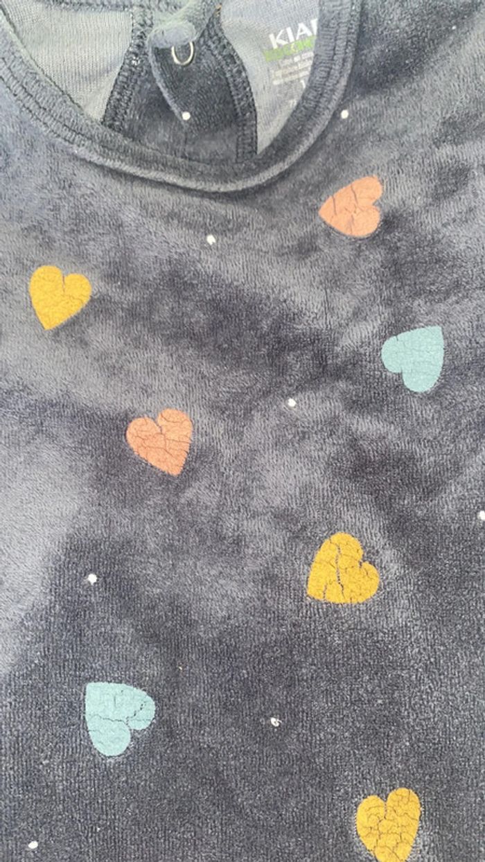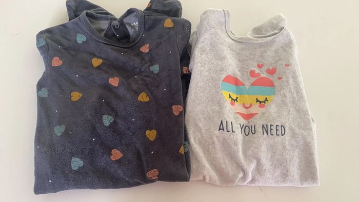 Lot de 2 Pyjamas 1 pièce manches longues avec pieds ; Matière velours Taille 18 mois ⚠️ Les cœurs sont craquelés, cf. Photos