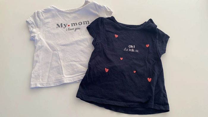 Lot de 2 t-shirts Le blanc est legere taché sous les écritures , cf photo zoomée