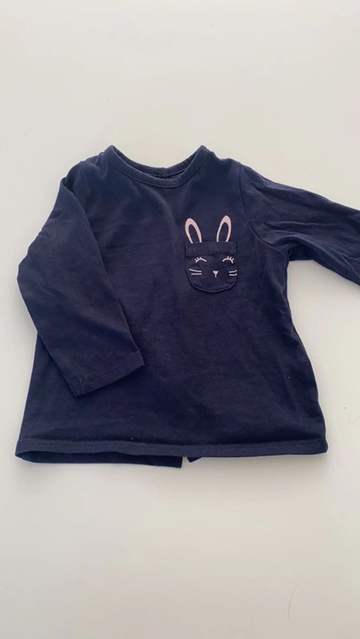 Haut type t-shirt manches longues sous pull Pour bébé fille Couleur bleu marine avec motif lapin rose pâle