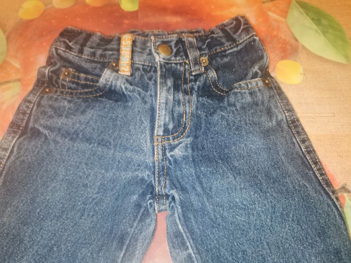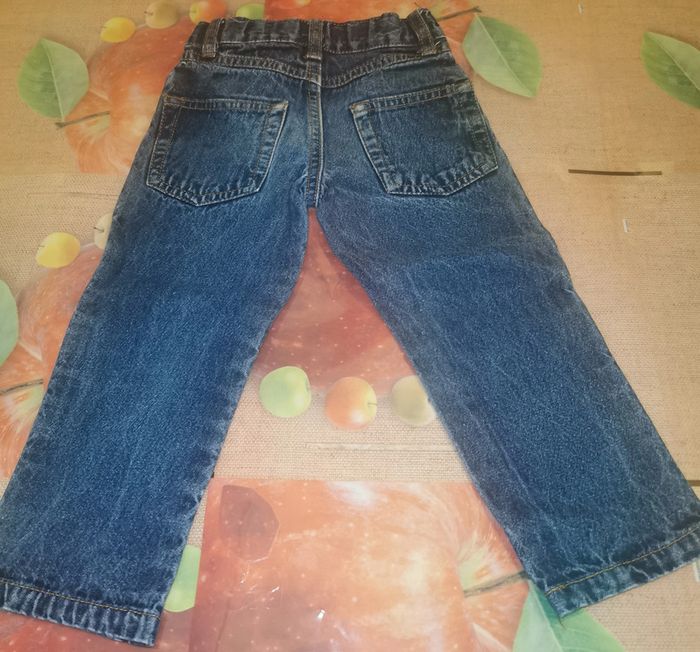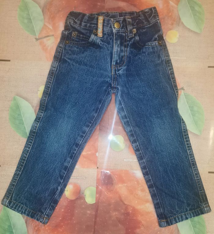 Jeans bleu taille 2 ans. Bouton crochet et fermeture éclair, passants pour ceinture, taille réglable par élastique intérieur.2 poches latérales plus une petite sur le devant, 2 poches sur le derrière. En très bon état. Réduction sur les lots à partir de 2 articles achetés.