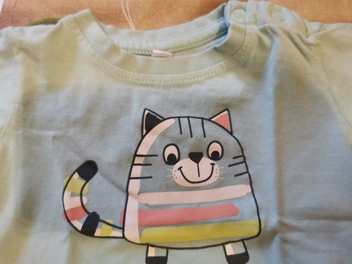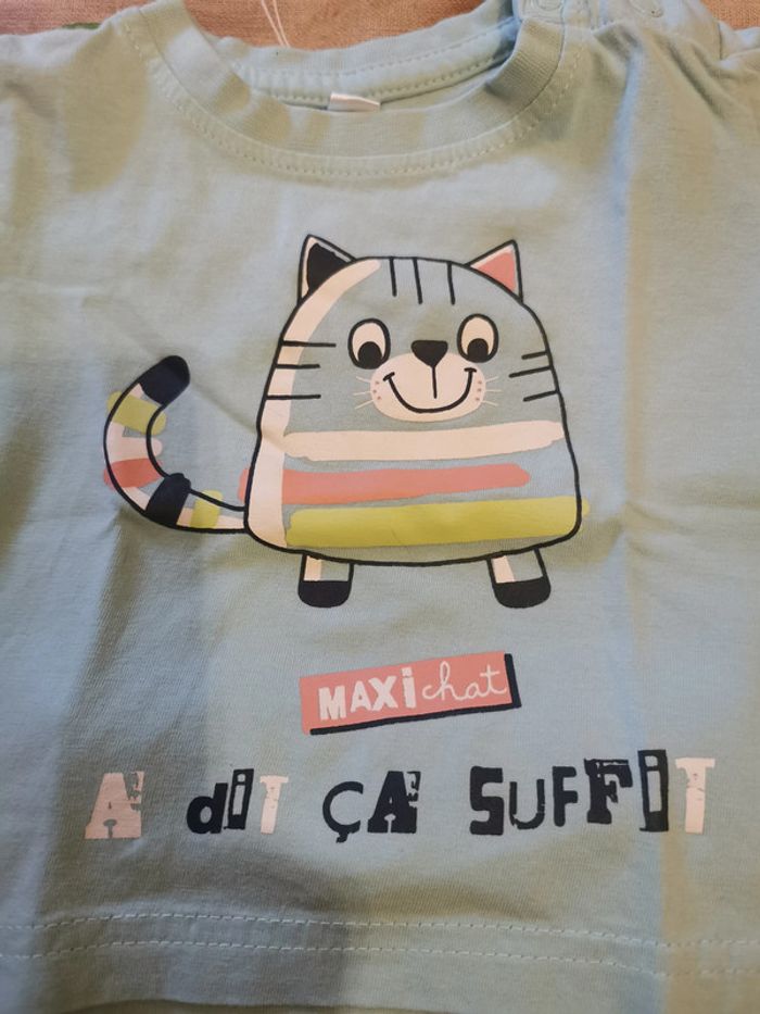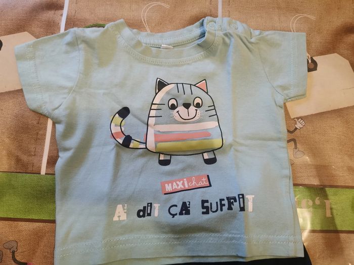 Ensemble d'été taille 3 mois : - t-shirt manches courtes bleu clair avec transfert petit chat. 2 boutons pressions dans le dos pour le passage de la tête. - short bleu foncé. Taille élastique. En très bon état. D'autres vêtements en 3 mois sont en vente dans mon dressing, réduction sur les lots à partir de 2 articles achetés. Jusqu'au 2 aout 10% supplémentaire à partir de 3 articles achetés soit 20% au lieu de 10 % et pour 5 articles 25% au lieu de 15%