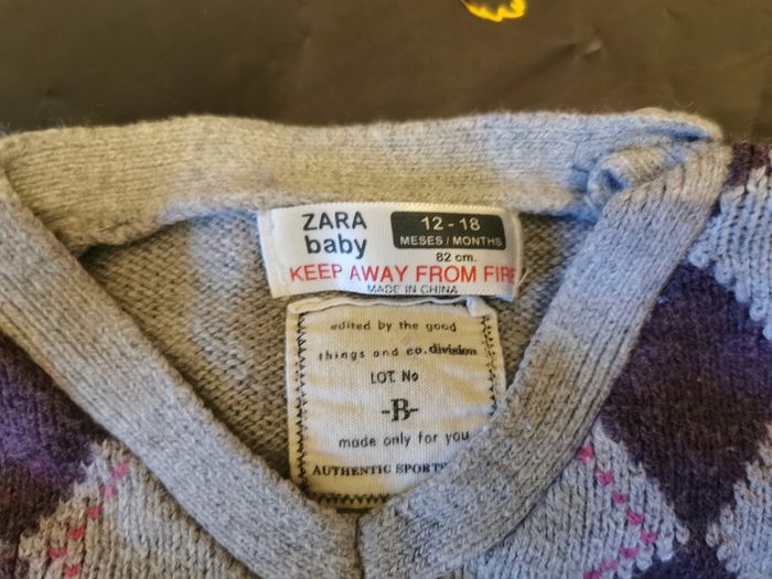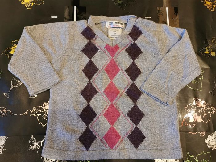 Pull fin "Zara baby" taille 12-18 mois. Idéal pour la demie saison. Gris avec losanges. Col en V. 2 boutons sur l'épaule pour le passage de la tête. En bon état. J'ai d'autres articles en 12 mois sur vinted alors n'hésitez pas à allez voir mes autres ventes. Réduction sur les lots à partir de 2 articles achetés.