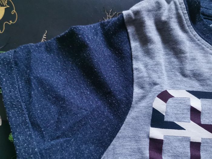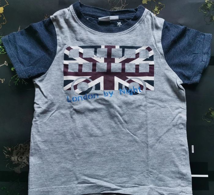T-shirt manches courtes "LH" taille 4 ans. Bleu et gris. En bon état.