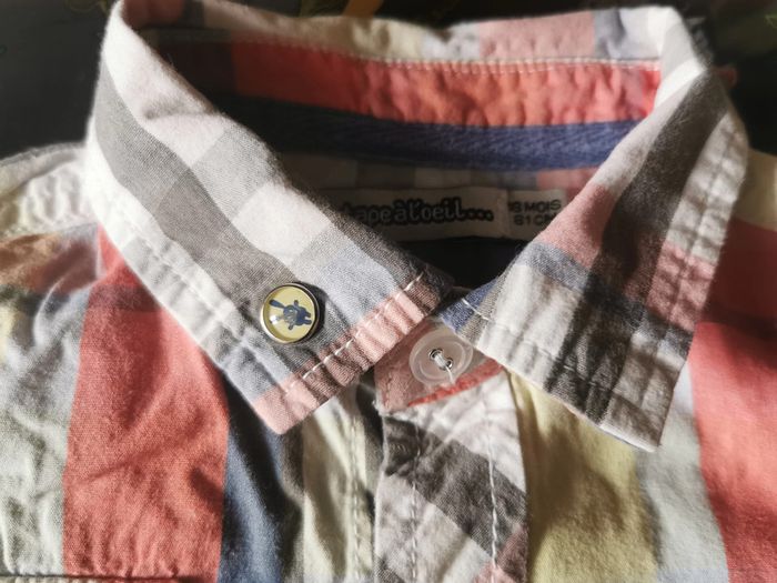 Chemise manches courtes "tape à l'œil" taille 18 mois. Multicolore en très bon état. Allez voir mes autres ventes pour ne payer qu'un seul frais de port et que ce soit plus avantageux.