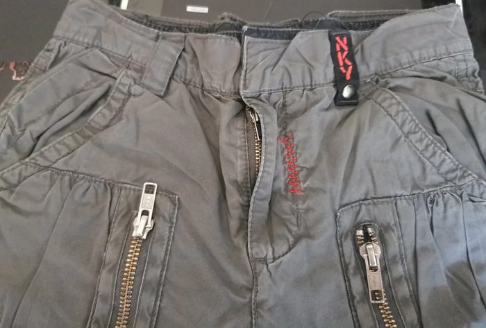 pantalon garçon kaki "nky" taille 6 ans. 4 poches sur le devant dont 2 zippées, 2 poches à l'arrière. Fermeture par bouton pression, scratch et fermeture éclair. Passant pour mettre une ceinture (pas d'élastique de resserrage à l'intérieur). En très bon état (juste une lettre marquée au stylo sur le derrière de l'étiquette 6 ans). Différents articles sont en vente. Vous ne paierez qu'un seul frais d'envoi.