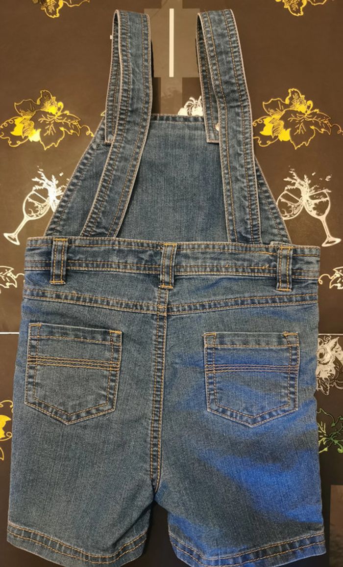 salopette en jeans short "kitchoun" taille 18 mois pour l'été en très bon état. Ouverture par pressions sur les bretelles et 2 pressions sur chaque côté. 4 pressions à l'entrejambe pour facilité le change. 2 poches avant et 2 poches sur le derrière.