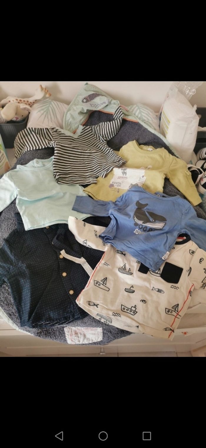 Lot 6 pull léger, en bon états porté 2 fois. Taille 1 mois. Pensée à faire des lots pour économiser 😊