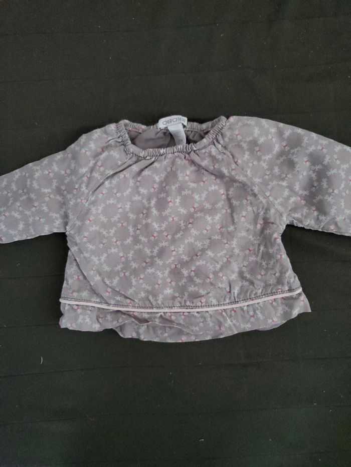 Blouse obaibi taille 1 mois doublée grise avec papillons