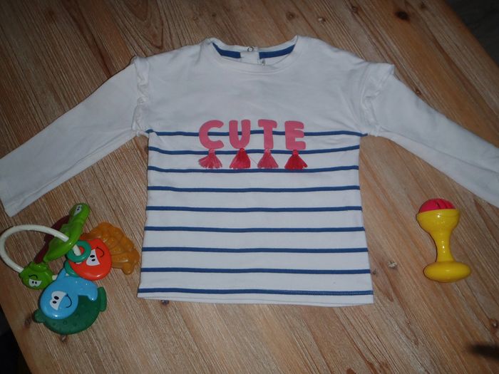 sweat ML à rayures blanc et bleu en très bon état fermé au dos par 3 pressions - taille 23 mois - marque orchestra