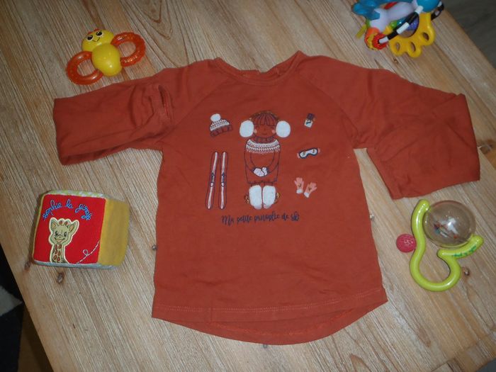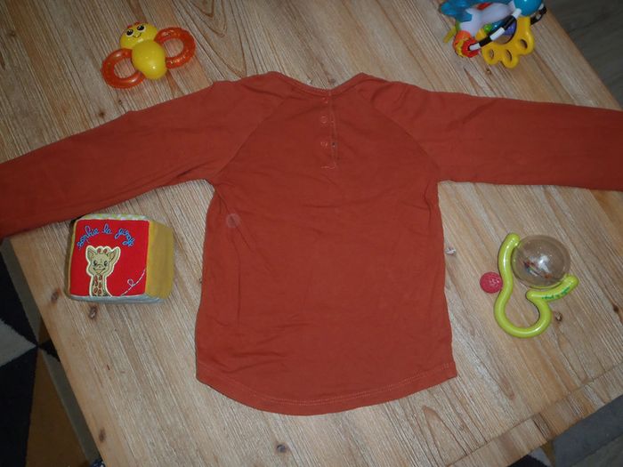 haut ML en très bon état fermé par 3 pressions au dos - marque vertbaudet - taille 3 ans - couleur rouille