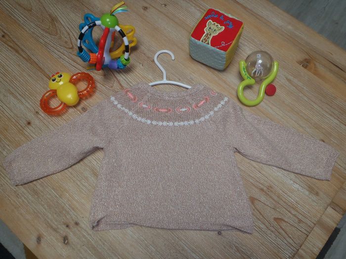 gilet beige pailleté en excellent état fermé sur le devant par des boutons - 6 mois - marque orchestra