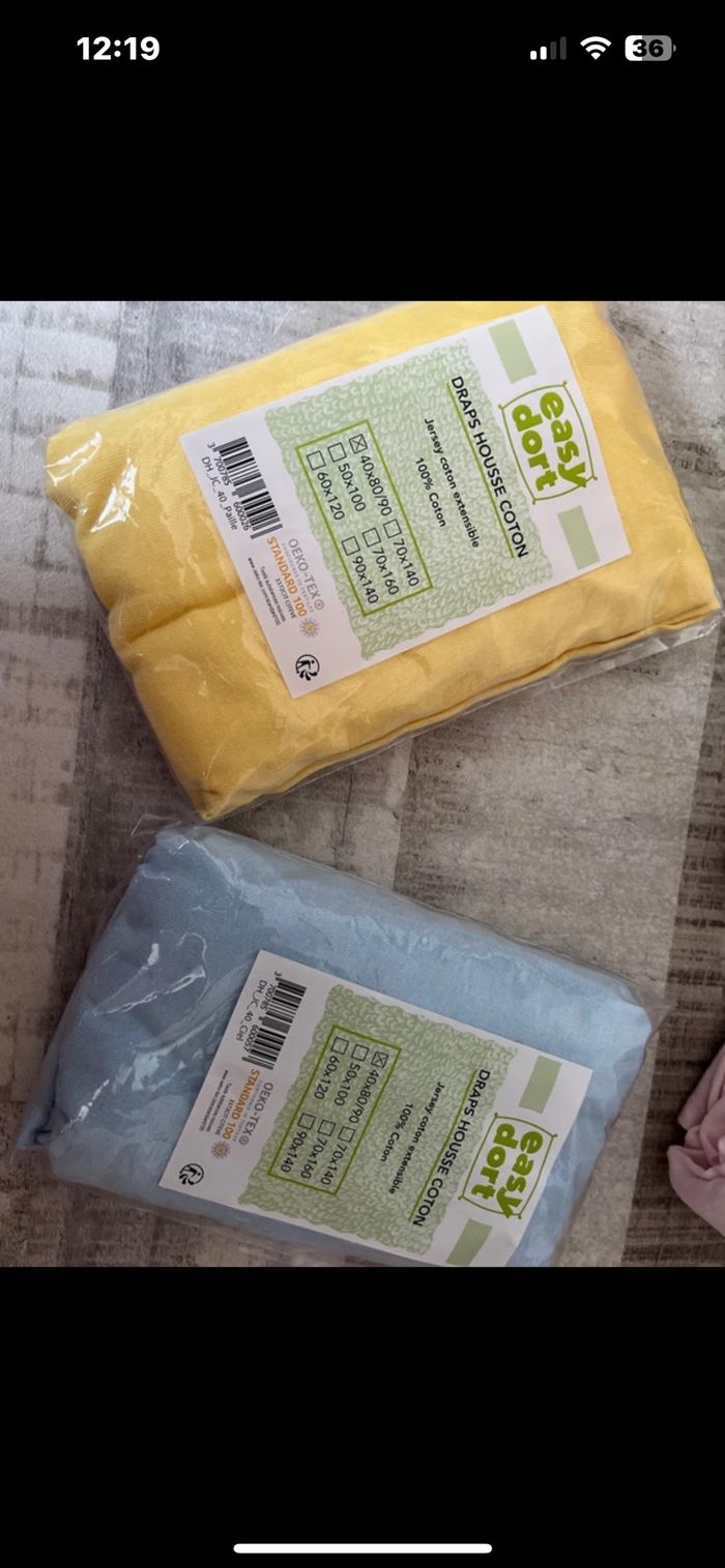 Lots de 5 draps bébé dimensions 40x80/90 2 neuf encore dans leur emballage es 3 ouvert mais comme neuf