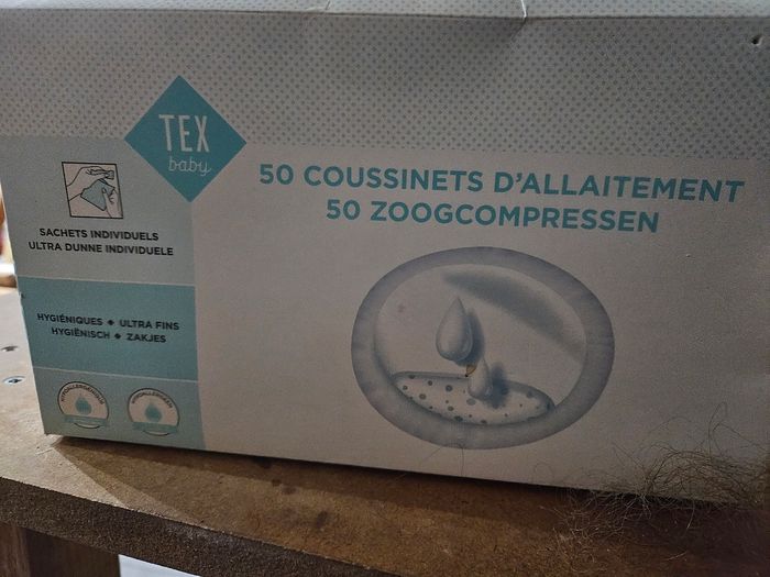 Lot de 2 paquets de coussinets d'allaitement Un ouvert avec 48 coussinets. Plus un lot de 10 sans boîte. 108 coussinets au total
