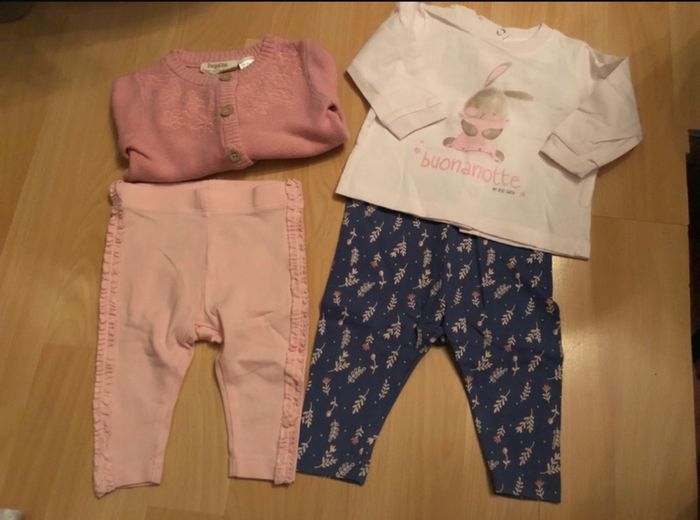 Gilet et leggings inscrits 0/2 mois mais taillent grand c est du 3 mois LUPILU t-shirt a manches longues chicco D autres articles de cette taille ⬇️ #lilyjade80fille3mois