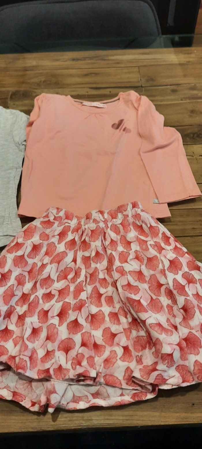 Lot 6 pièces, 3 tenues 1 pantalon, 1 short, 1 jupe 2 T-shirts manches longues et 1 t-shirt manches courtes En très bon état Taille 3 ans