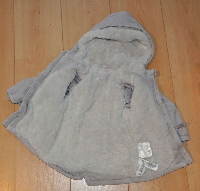 Parka fourrure gris clair t.18 mois TB état - photo numéro 3