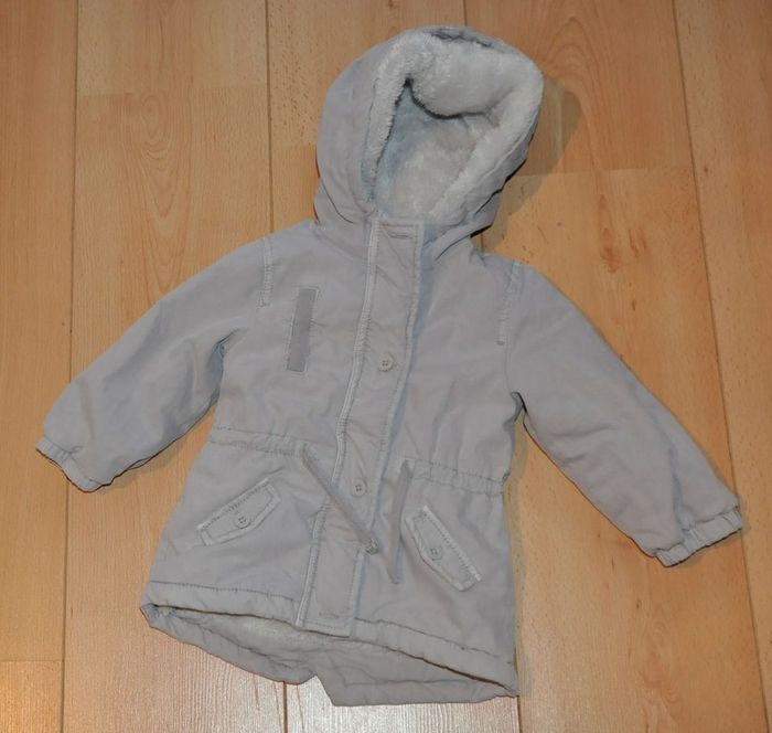 Parka fourrure gris clair t.18 mois TB état - photo numéro 1