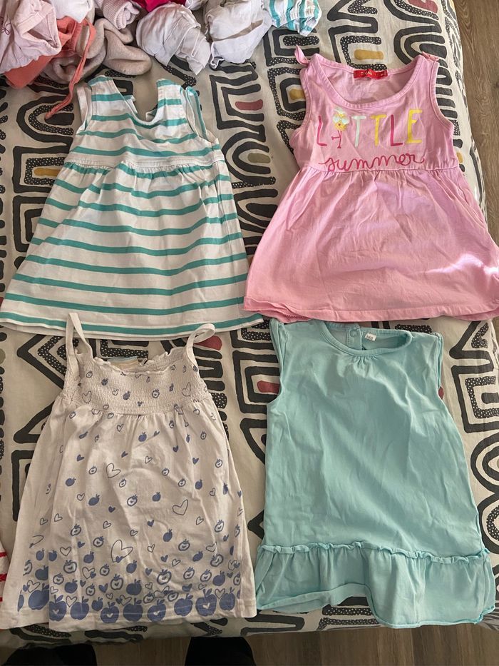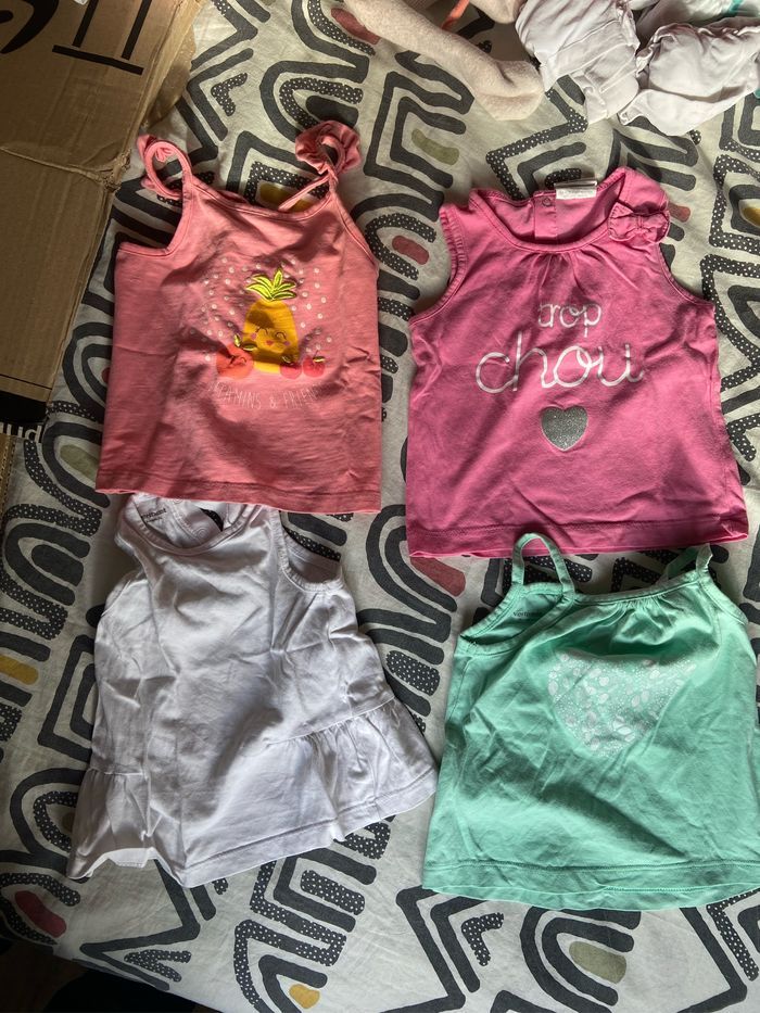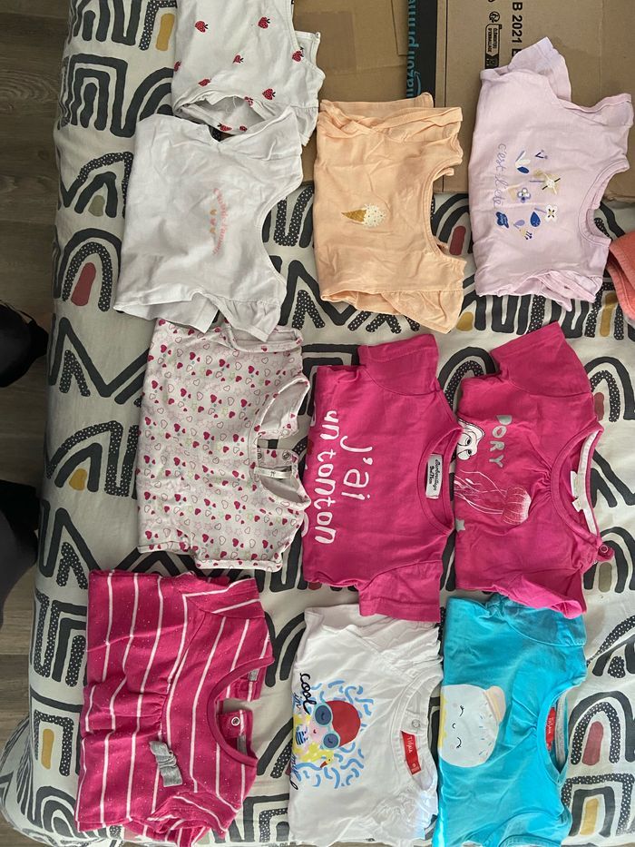 Vends lot vêtements fille 9 mois. Nombreux articles : -5 robes -10 t shirts manches courtes -10 robes manches courtes -4 débardeurs -2 pantalons -1 grenouillère -3 t-shirts manches longues Nombreuses marques. Tout en bon état, n’a pas beaucoup servi.