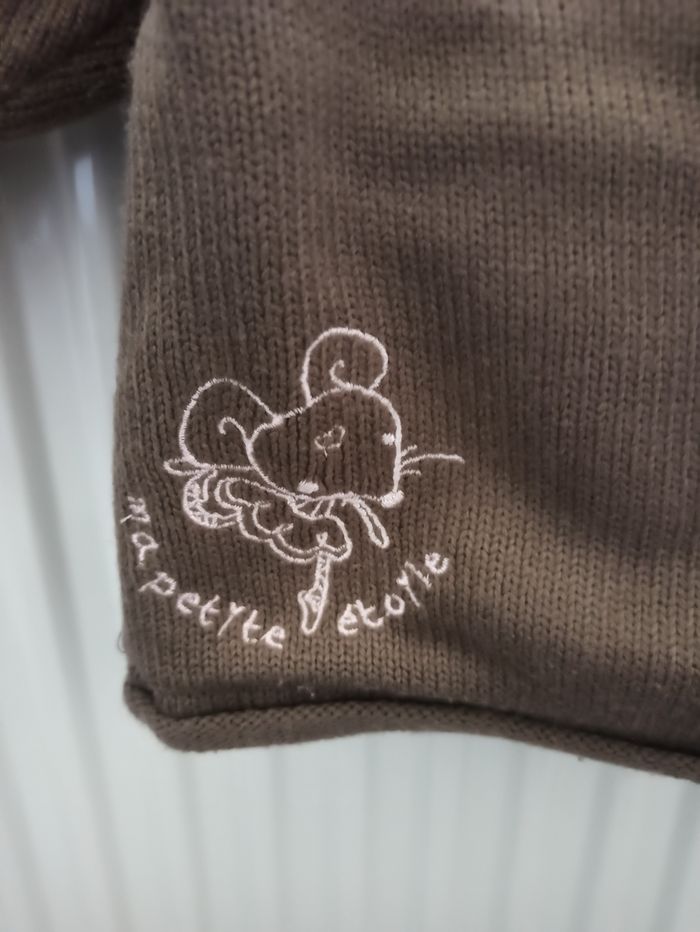 Gilet épais cache cœur de couleur marron provenant de la Halle. La taille de ce gilet est du 3 mois. Il est en bon état.