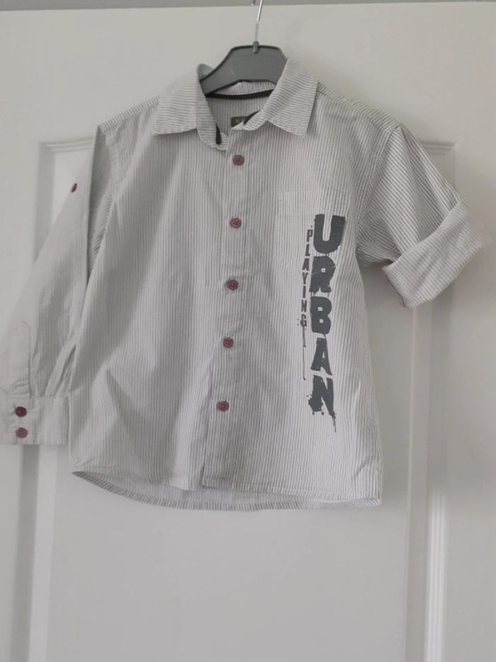 Chemise manches longues retroussables garçon 6ans 100 %coton Hauteur 44 cm Épaules 33 cm #kate9036