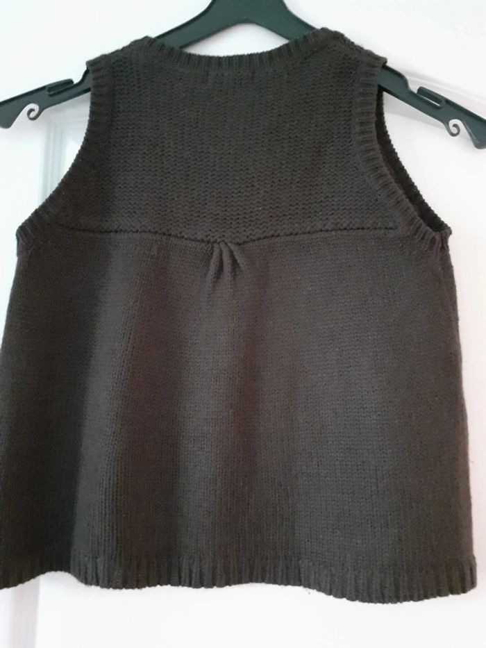 Gilet fille court sans manche A mettre éventuellement sur un chemisier 85 % acrylique 15 % laine Hauteur 42 cm Épaules 24 cm #kate9036