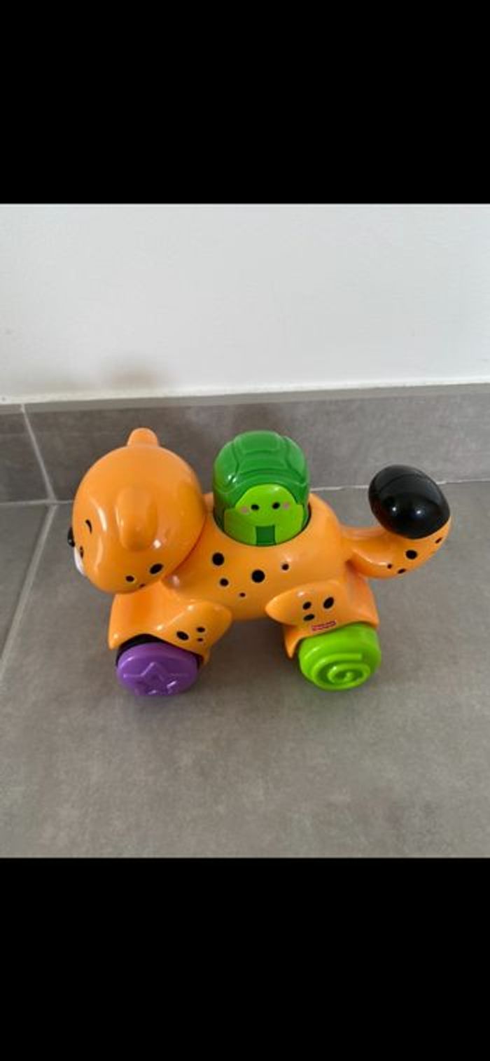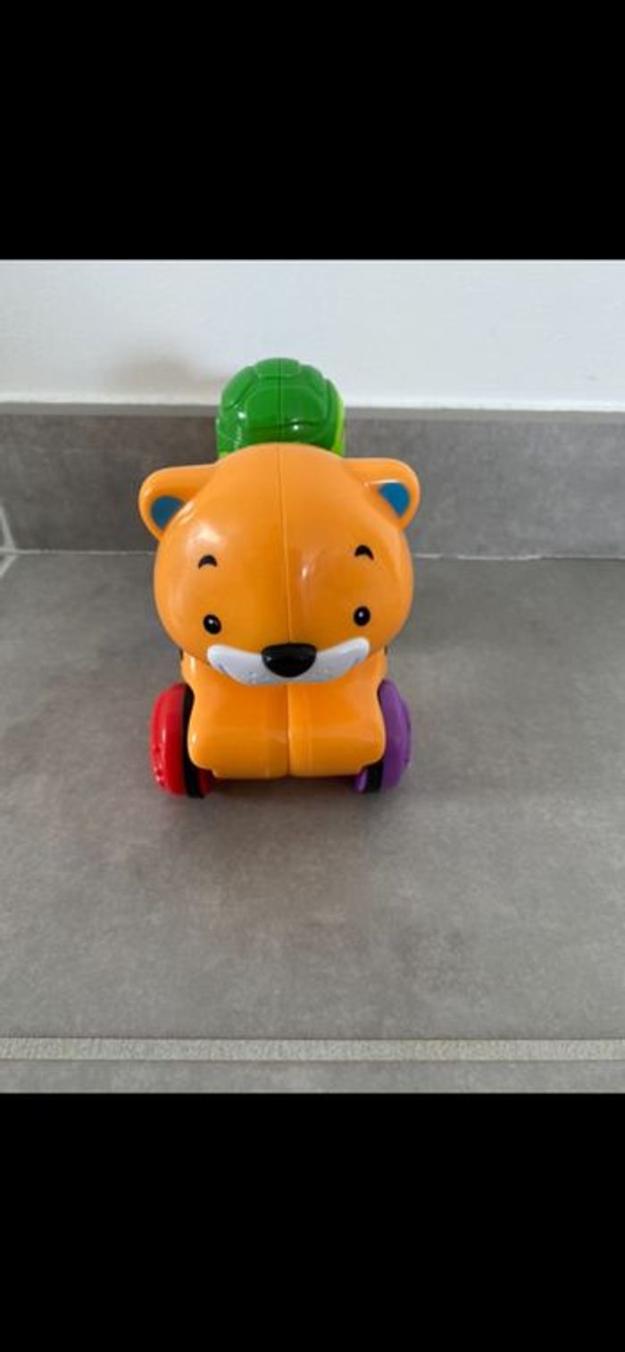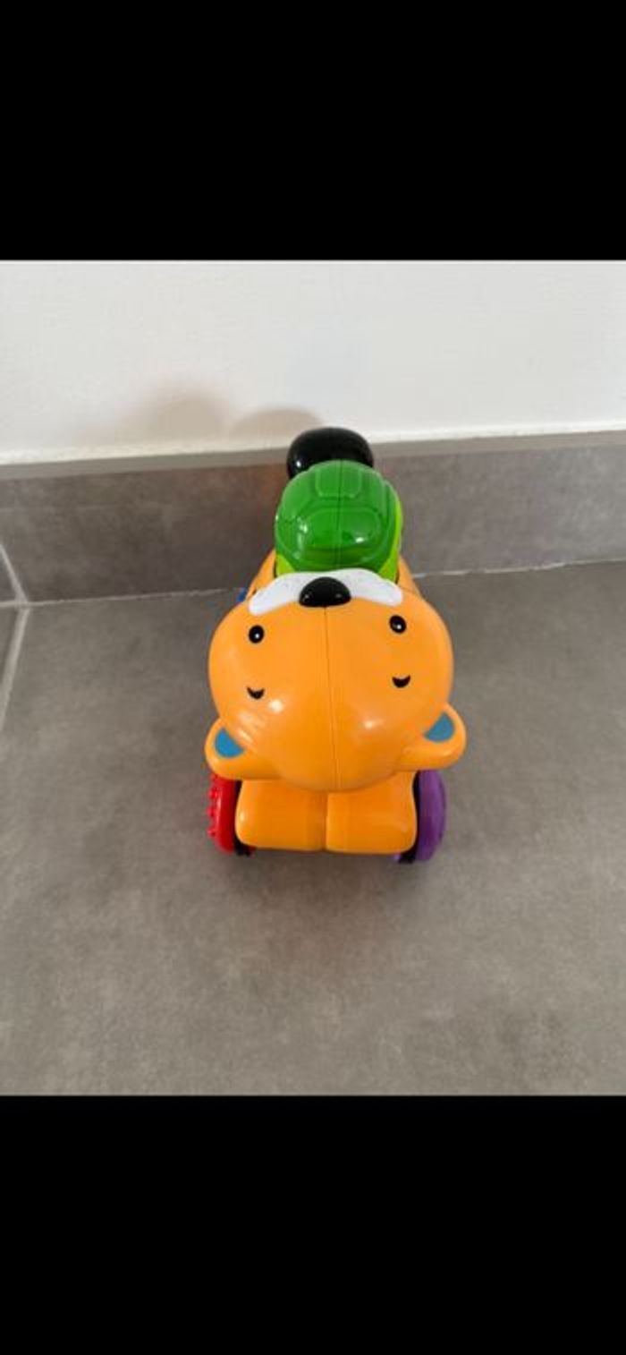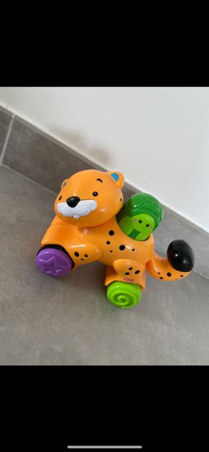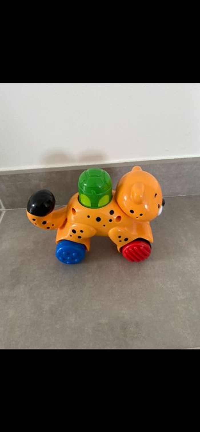 Tigre à roulette qui fonctionne par pression. Il faut appuyer sur la tortue pour qu'il avance tout seul! Doublon donc neuf. Super drôle. N’hésitez pas à me suivre car encore beaucoup de vêtements fille (du 1 mois à 8 ans), des vêtements garçon (du 1 mois au 12 mois pour le moment ). Beaucoup de 18 mois à poster si besoin j’envoie des photos. Des chaussures. Énormément de jouets et livres. Maison non-fumeurs et sans animaux même si je les adore. Il n'y aura pas de poils ou d'odeur désagréable. Vous recherchez quelques choses, demandez moi. Je réponds très rapidement. Bon shopping 😊