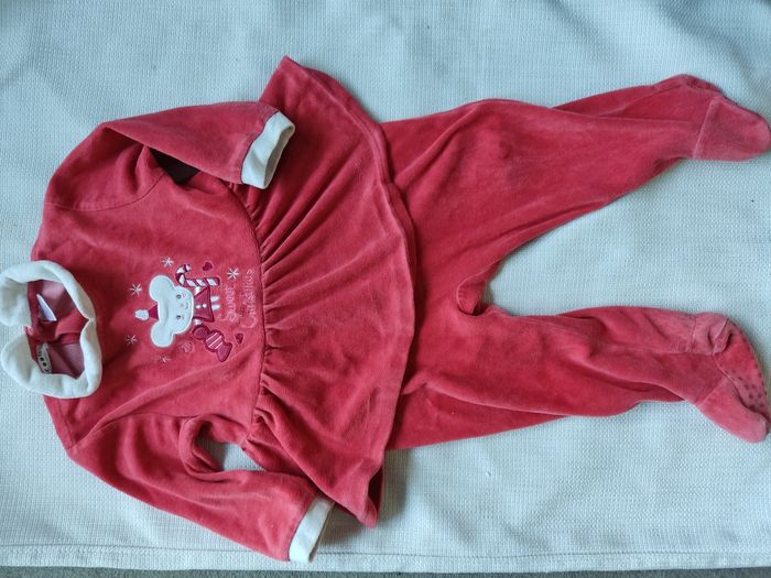Pyjama 1 pièce, hiver, fille, couleur rouge, thème Noël, avec jupette intégrée, taille 81cm, marque la redoute.