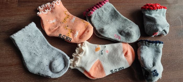 Lot de 6 paires de chaussettes filles Pointure 15/16 4 neuves et 2 très bon état, très peu portées Orangées et grises avec liseret couleur Marque Vertbaudet