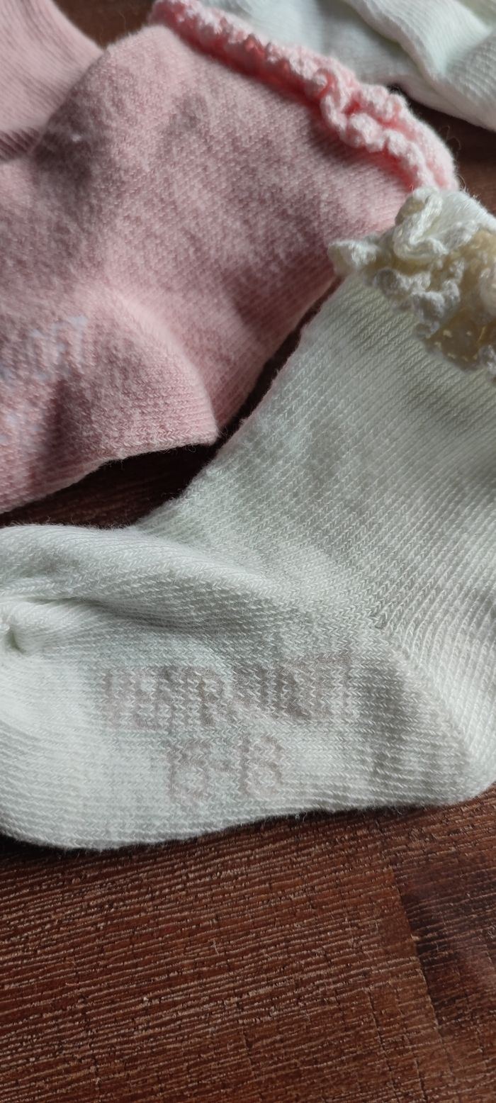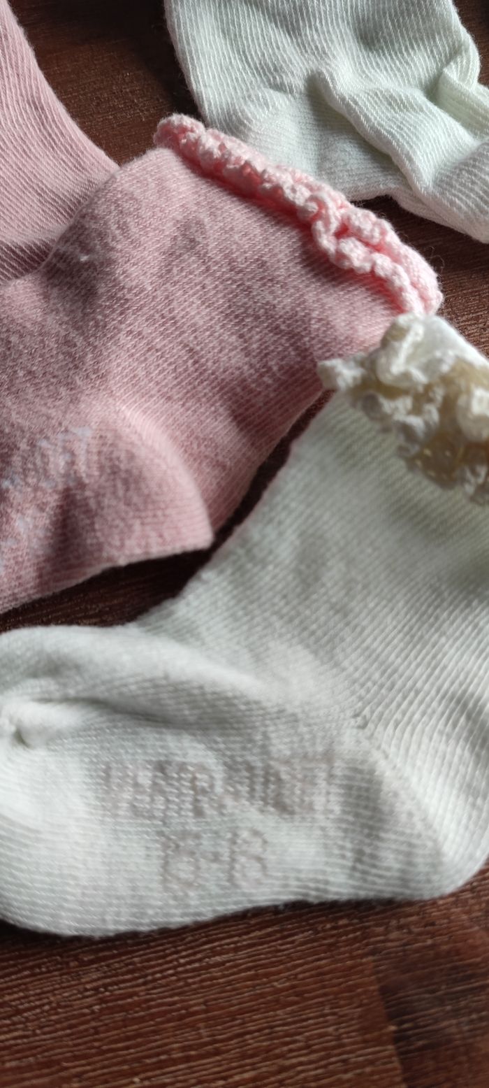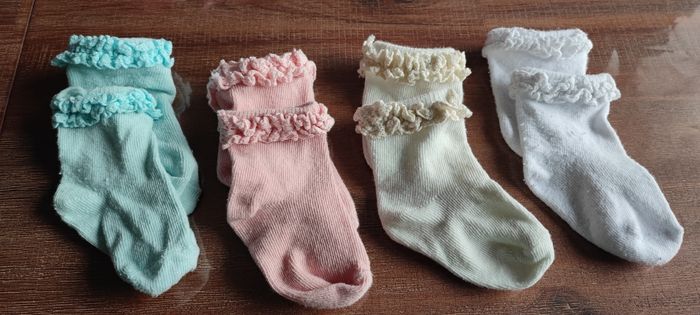 Lot de 4 jolies paires de chaussettes fille 4 couleurs avec froufrous chevilles 2 neuves et 2 en très bon état Marque Vertbaudet Pointure 15/18