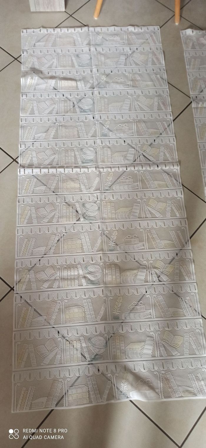 Vends 3 rideaux motifs Bureau l 60 cm h 145 cm
