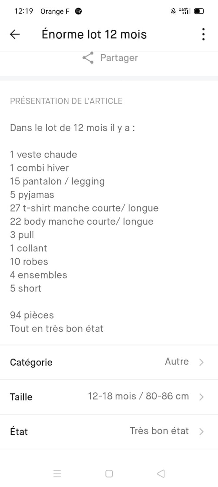 Bonjour Je vend un lot de 12 mois, tout es décris en photo