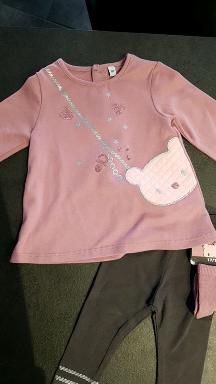 Neuf avec étiquette Petit pull rose à détails paillettés Petit legging gris violet Chausette rose