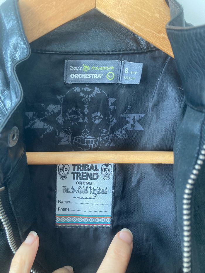 Très jolie veste Orchestra en bon état. Une légère usure à la manche. Coton et similicuir Lavage à 30 degrés