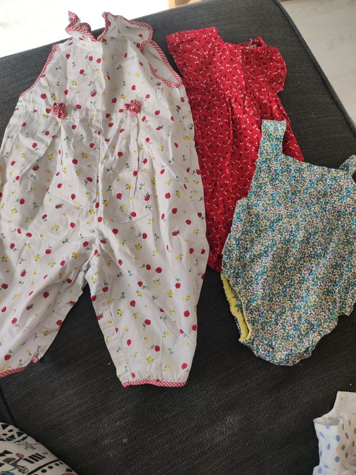 3 ensembles été - combi pantalon in extenso 6 mois - robe bout'chou 6 mois - boomers 3-6 mois