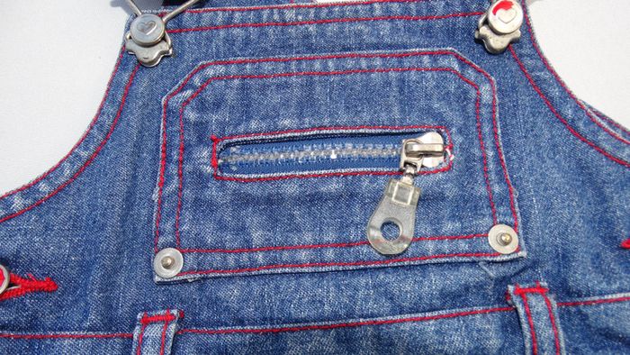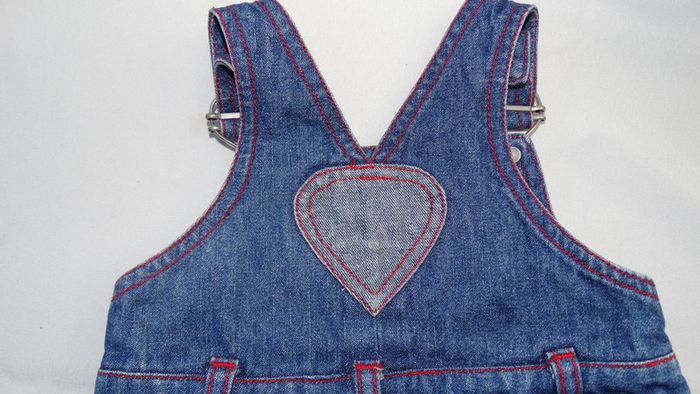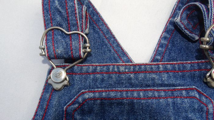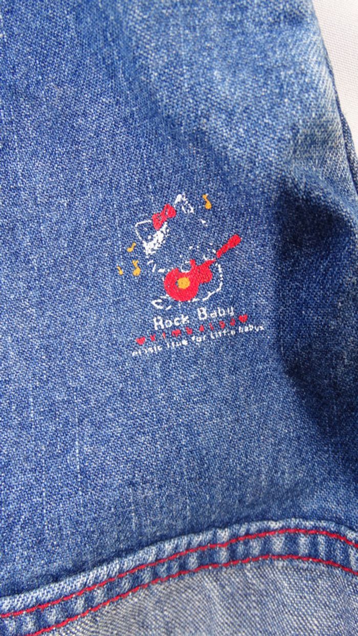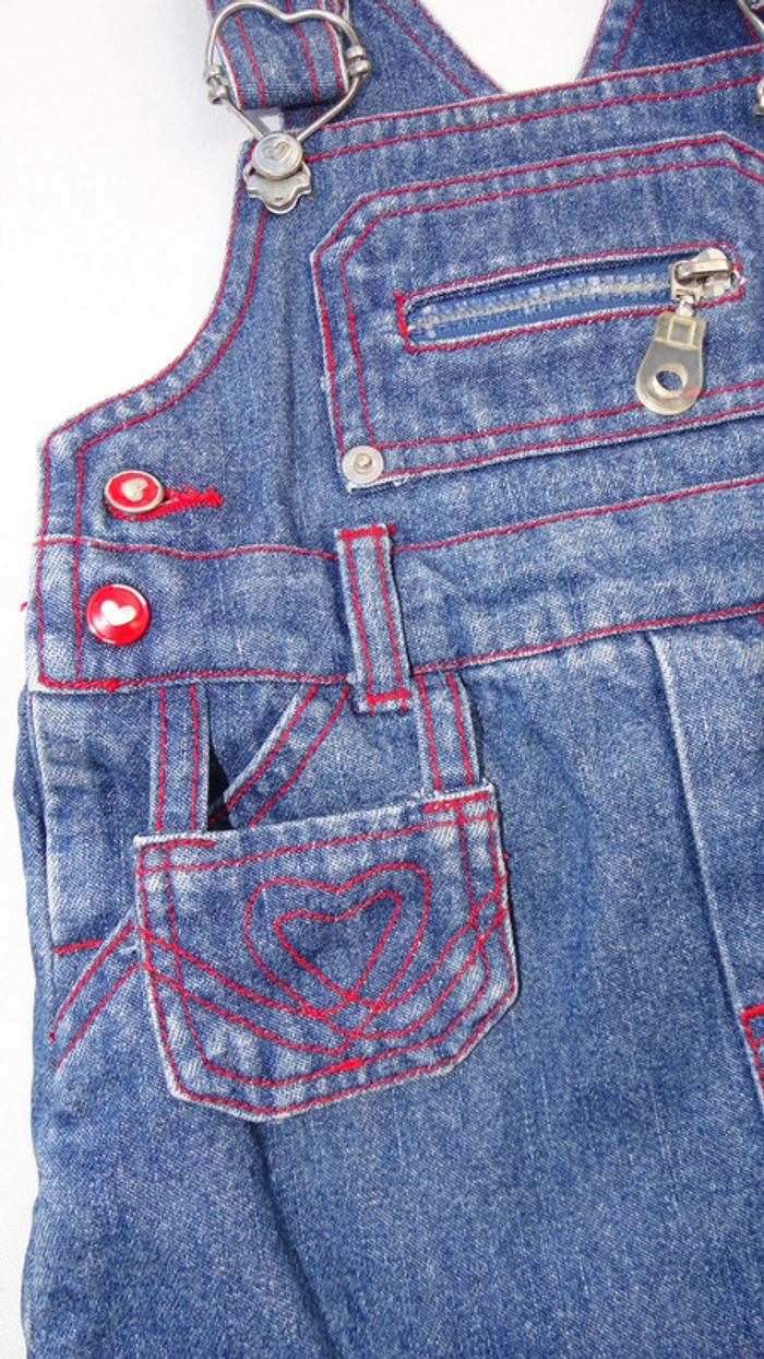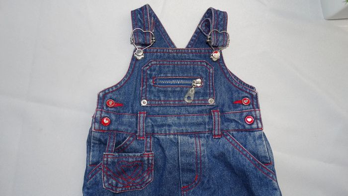 Robe jean KIMBALOO Couture rouge Poche devant fermeture éclair Motif en bas petit chat Boutons rouge avec coeur argenté Taille 18 mois
