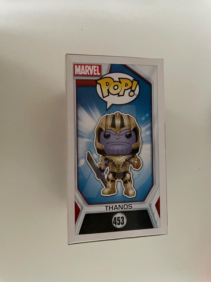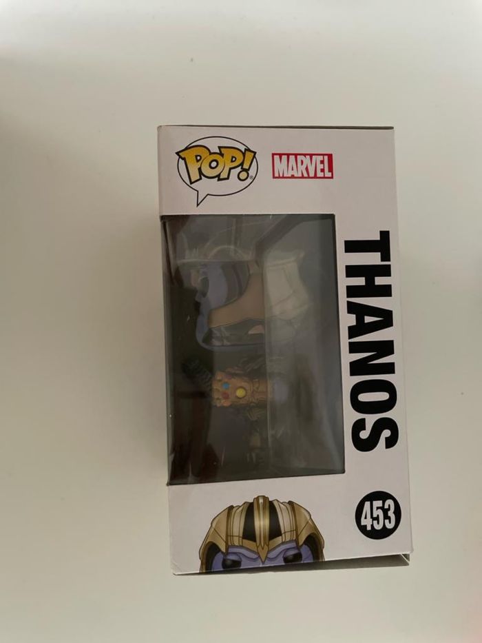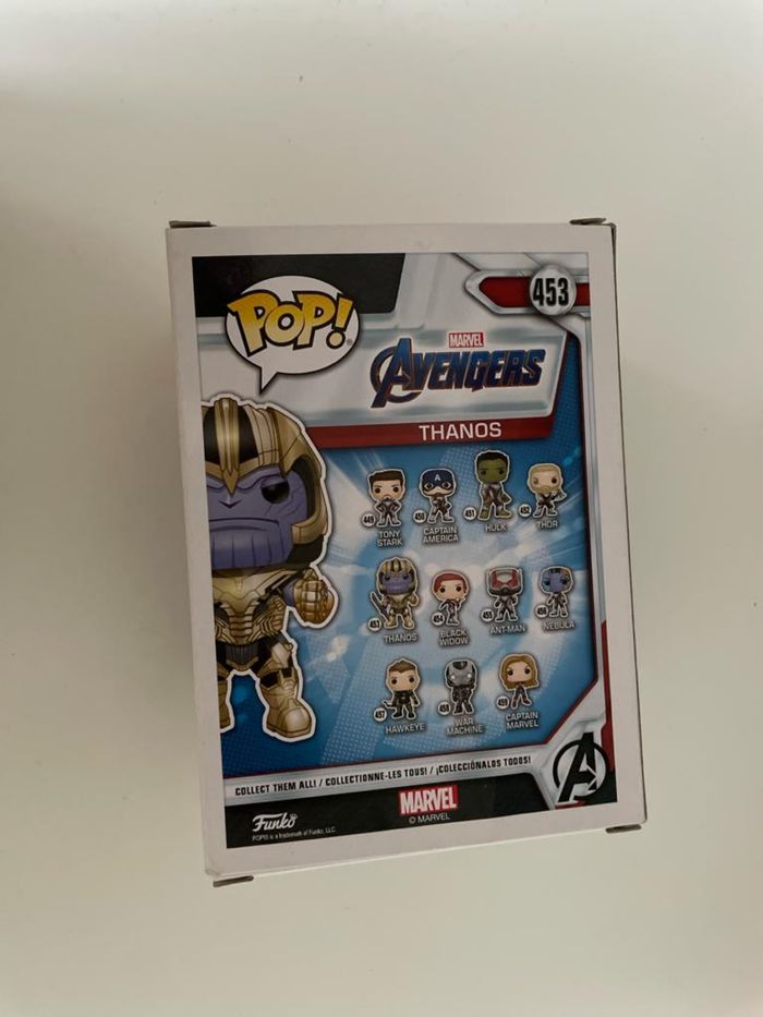 figurine funk pop Avengers Thanos 453 etat neuf -jamais déballé matière vinyle taille 10 cm poids 159g ne convient pas aux enfants de -de 3 ans
