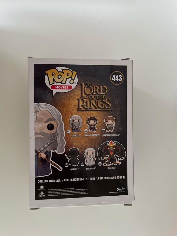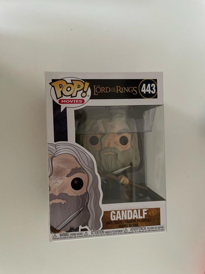 figurine funk pop Lord of Rings Gandalf numero 443 etat neuf -jamais déballé matière vinyle taille 10 cm poids 159g ne convient pas aux enfants de -de 3 ans