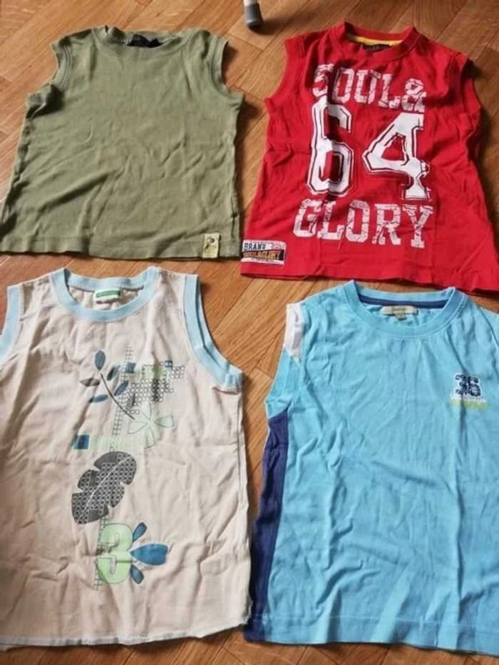 Lot vêtements Top Rouge 5 ans vendu Top Turquoise tex 5 ans Top Beige vert baudet 5 ans Top Kaki 4/5 ans tex Je donne le Short bleu 5 ans 3€ le lot ou à l'unité #maev344garcon5ans