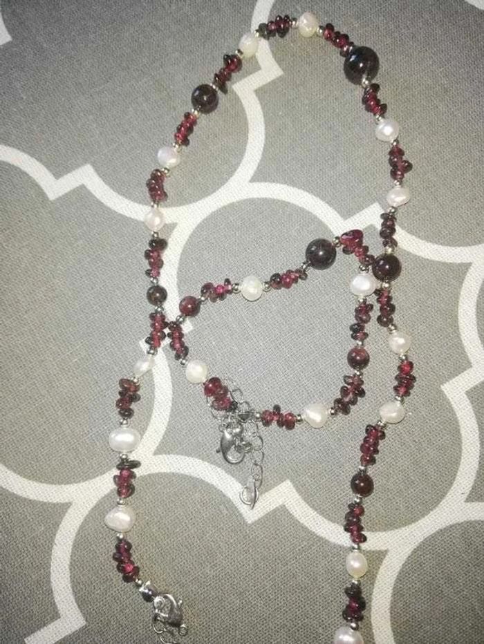 Parure fantaisie perles Collier et bracelet Marron blanc Très bon état 1€ ✅#maev344bijoux