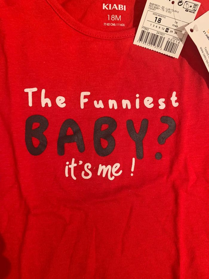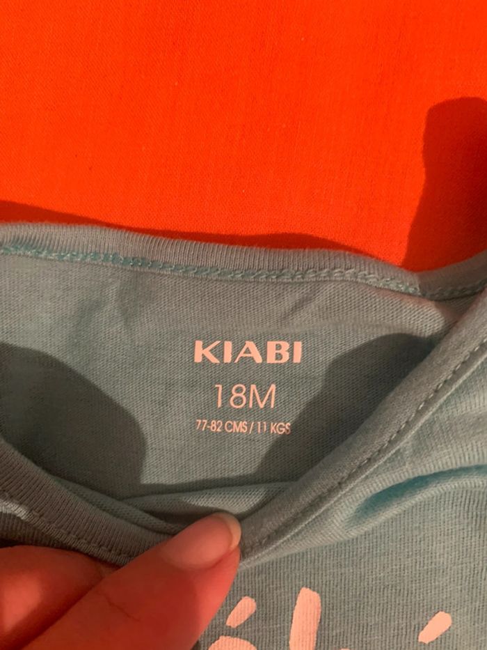 Lot compose d un tee-shirts Neuf rouge et d un tee-shirts turquoise en trèsbon état. Taille 18 mois . Marque Kiabi
