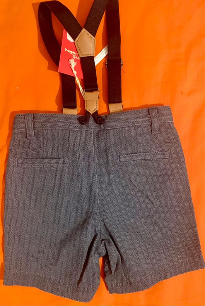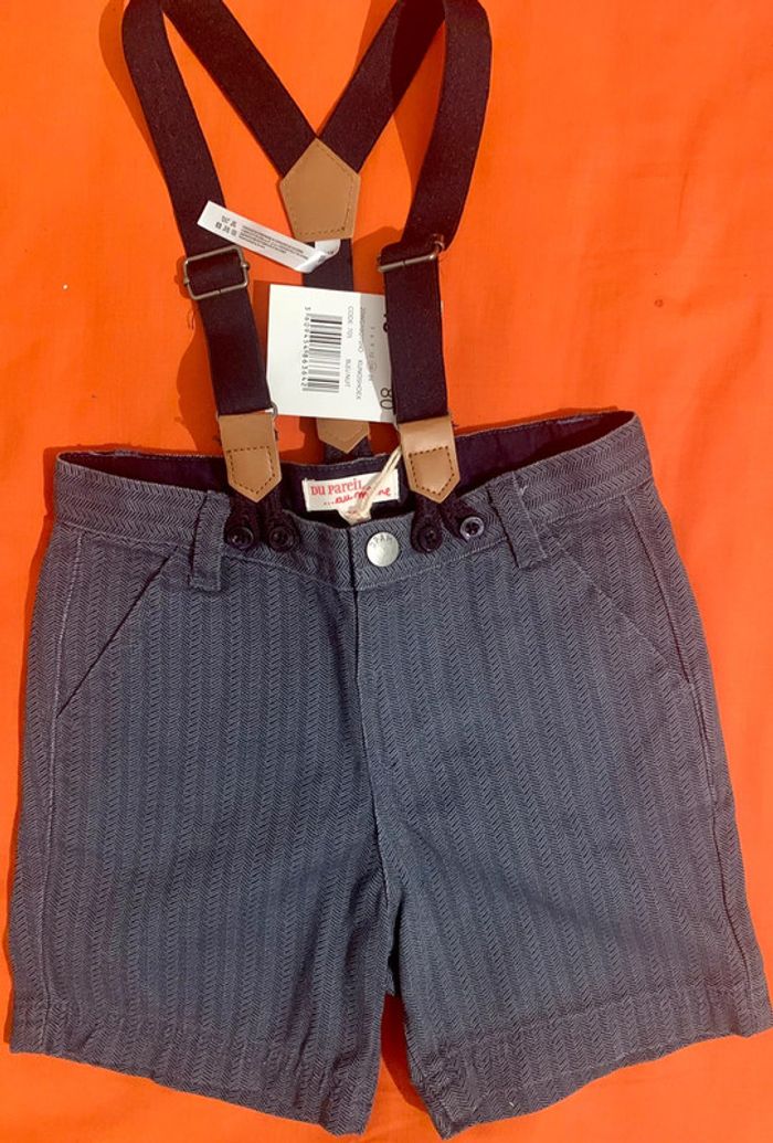 Short /bermuda gris et doublure bleu marine , taille 18mois , bretelles amovibles , marque Du pareil au même , Neuf