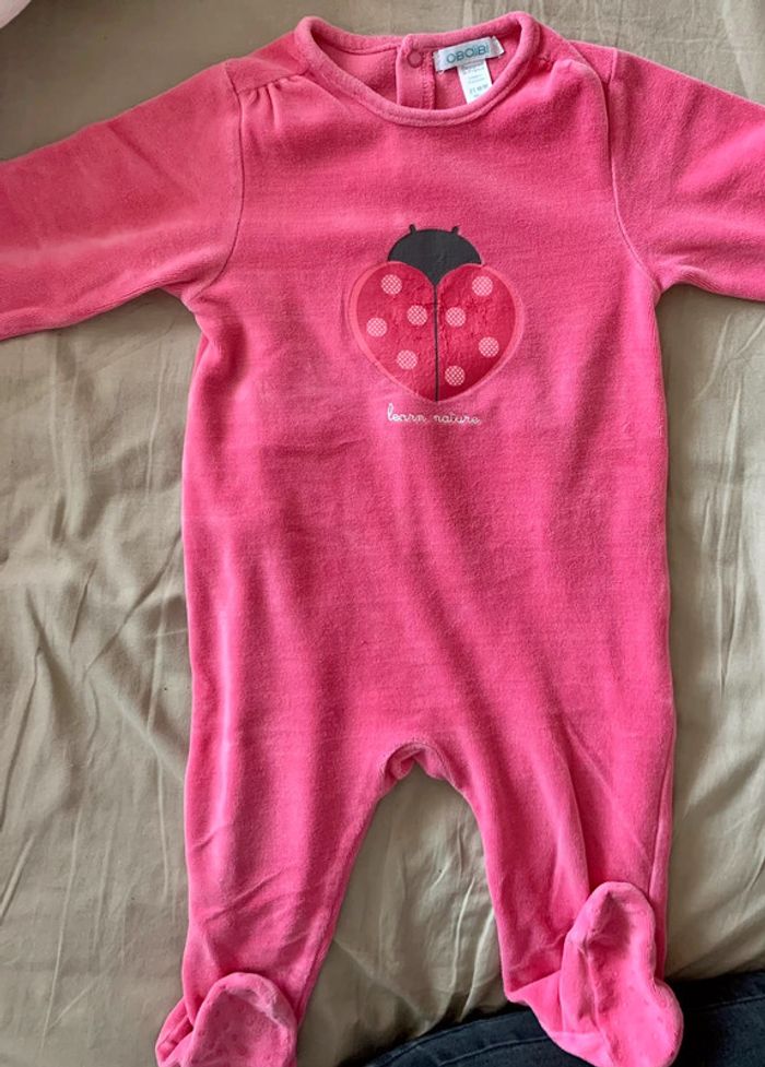Lot composé de 2 pyjamas /grenouillères en taille 23 mois . Coccinelle marque Obaibi , bon état général , logo légèrement craquelé ( voir photo ) Minnie marque Disney , bon état mis à part le logo légèrement craquelé , un bouton pression ou commence un petit trou et une petite tache à une manche ( voir photos )